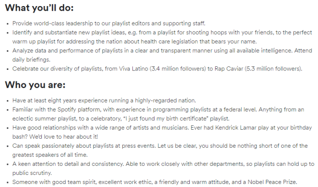 We explain Spotify for artists hoping to get their songs online and in front of audiences. Respect, support, and damn good benefits. Spotify careers span a wide range of roles: engineering, content, analytics, product management The first place to look is the Spotify careers page where you will see both categories and locations.